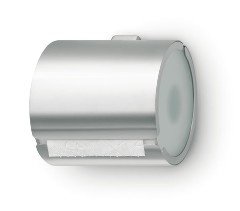This toilet paper holder offers convenience and chic, modern style to the bathroom. Made of stainless steel with frosted glass sides, this toilet tissue holder is discrete yet stylish, hiding the toilet paper from view. It is the perfect organizer for any bathroom. Imported from Germany.Matching pieces available: Toilet Brush, Wall Mounted Toilet Brush, Soap Dispenser, Wall Mounted Soap Dispenser, Paper Towel Dispenser. Assembly level/degree of difficulty: No Assembly Required.